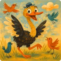 Once upon a time, in the heart of the meadow where the grass was as green as a pickle, lived a real character—an ostrich. This ostrich was a combo meal, like getting fries AND a milkshake, but in animal form!