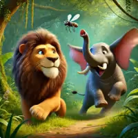 But the Lion still felt unsure and walked into the jungle, feeling sad. While he was walking, he met an Elephant. The Lion started talking to the Elephant and noticed the Elephant kept flapping his ears.
