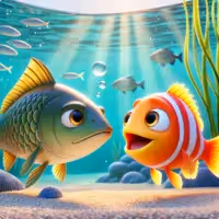 In this huge wet playground, the River Fish saw some sea buddies. "Golly! They look different," he thought, wiggling his fins in surprise.