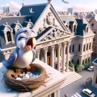 In a buzzing, bustling city full of hustle and bustle, guess what stood in the middle? The Court of Justice! Yeah, a place where they sort out your "did-dos" from your "didn't-dos." It was like the Principal's office but for grown-ups. Way up on the tippy-top of this oh-so-fancy building, a Swallow thought, "What a posh place for a crib!"