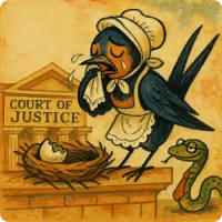 And the Swallow, bless her feathers, was flabbergasted. "Injustice at the Court of Justice? That's like having a bath with no bubbles!" She sat there, right atop this big, grand symbol of fairness, and thought how unfairly life had just treated her. She cried a river, not just for her lost eggs but for the great big irony of it all.